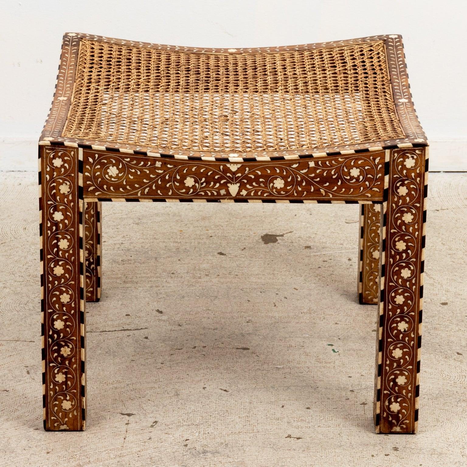 Bone Inlaid Caned Stool